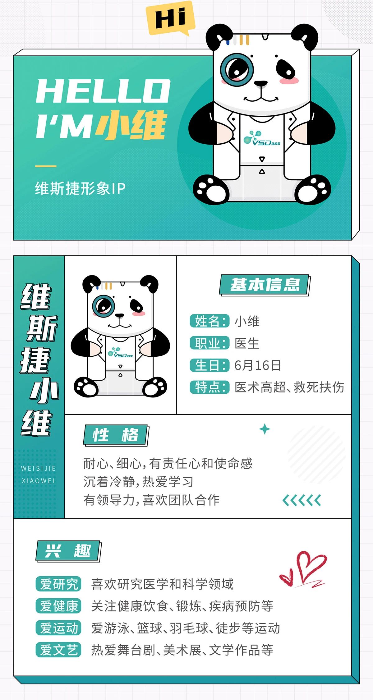 以维斯捷机器为原型,绘制熊猫的形象,再给熊猫加上白大褂,来展示医生和蔼可亲的形象。这种结合不仅体现了产品的科技感,也展现了医生的亲切与专业。